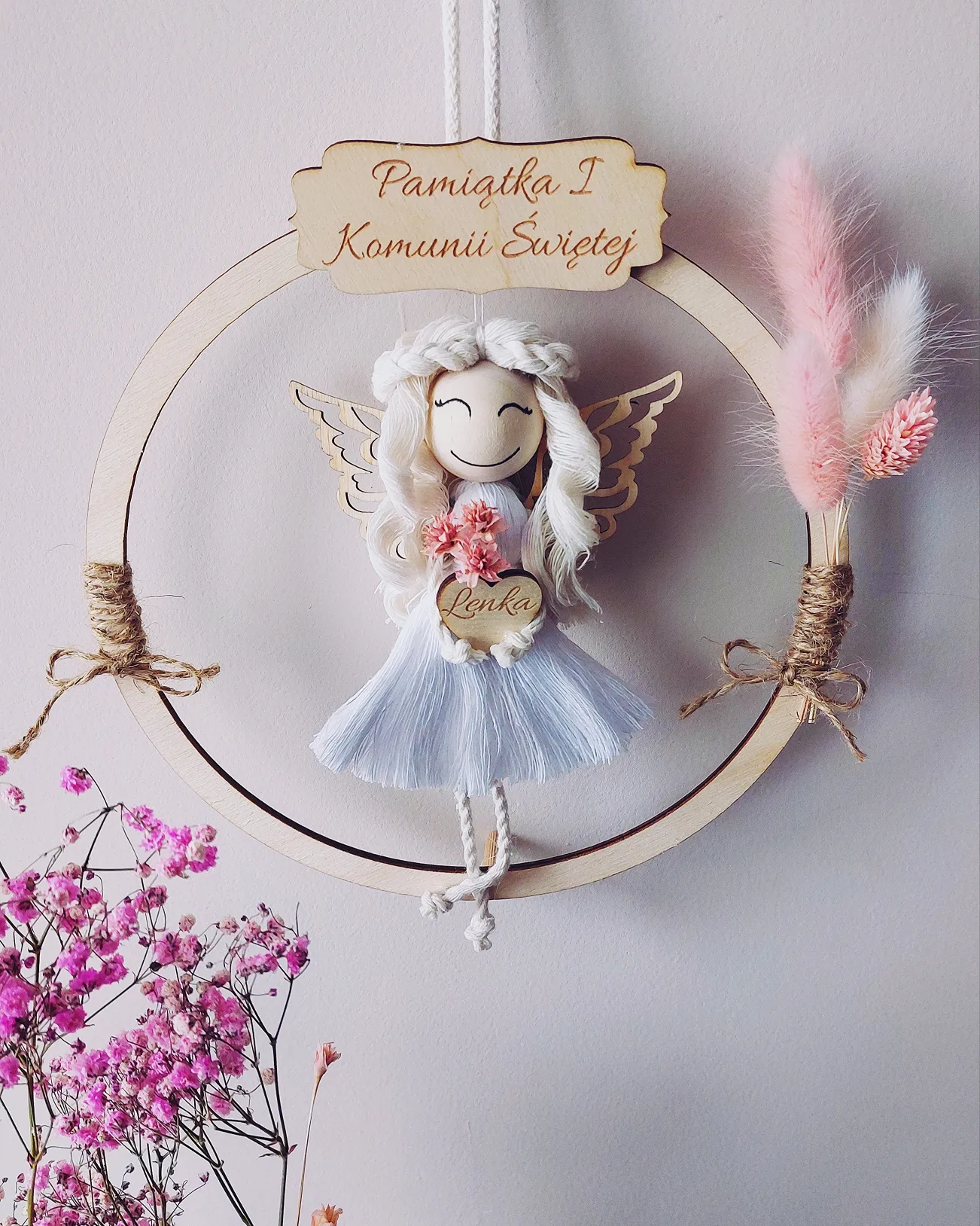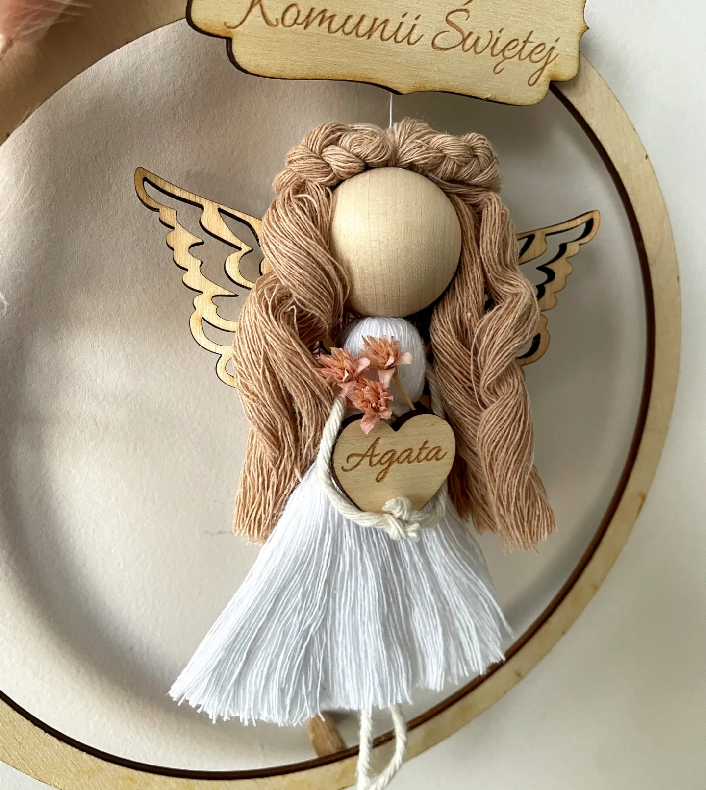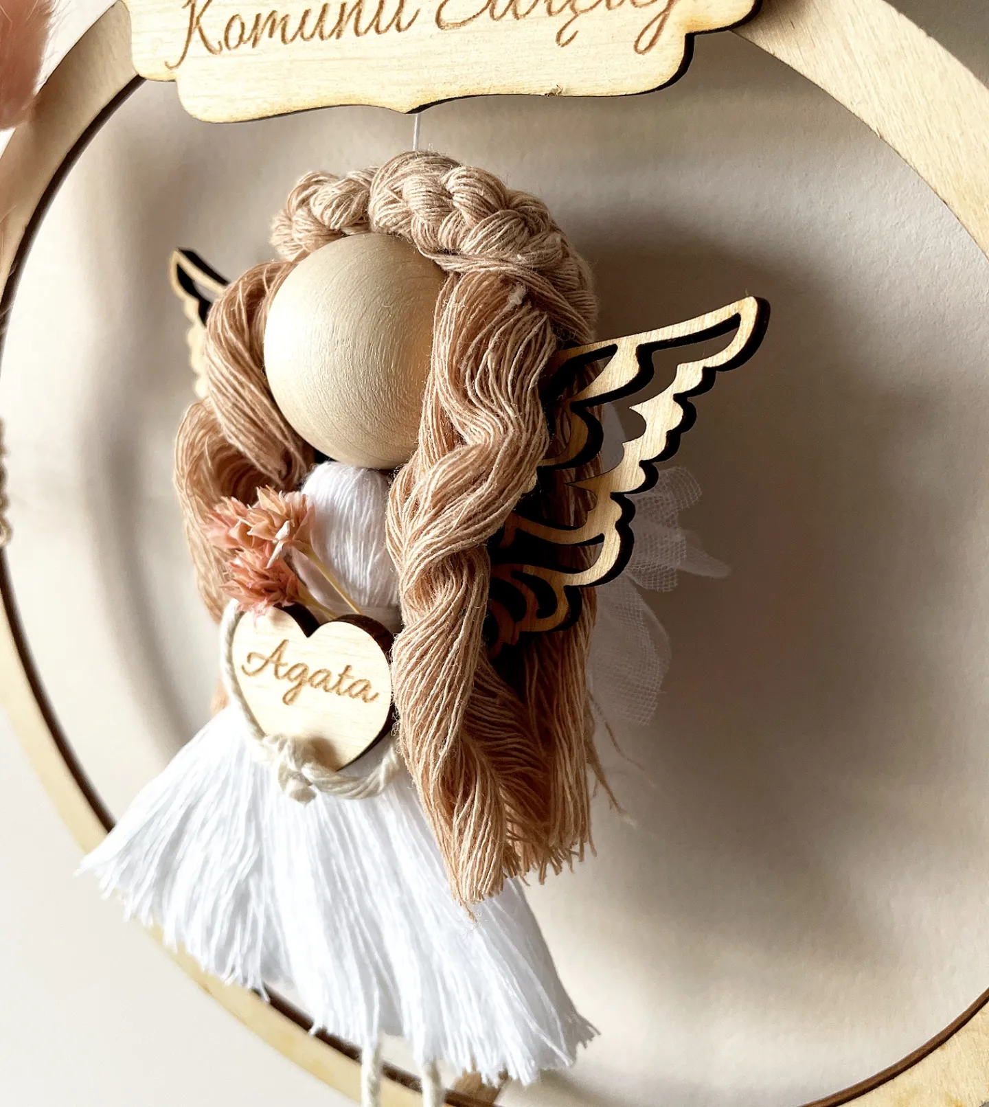 Aniołek na obręczy 20 cm wykonywany na zamówienie.