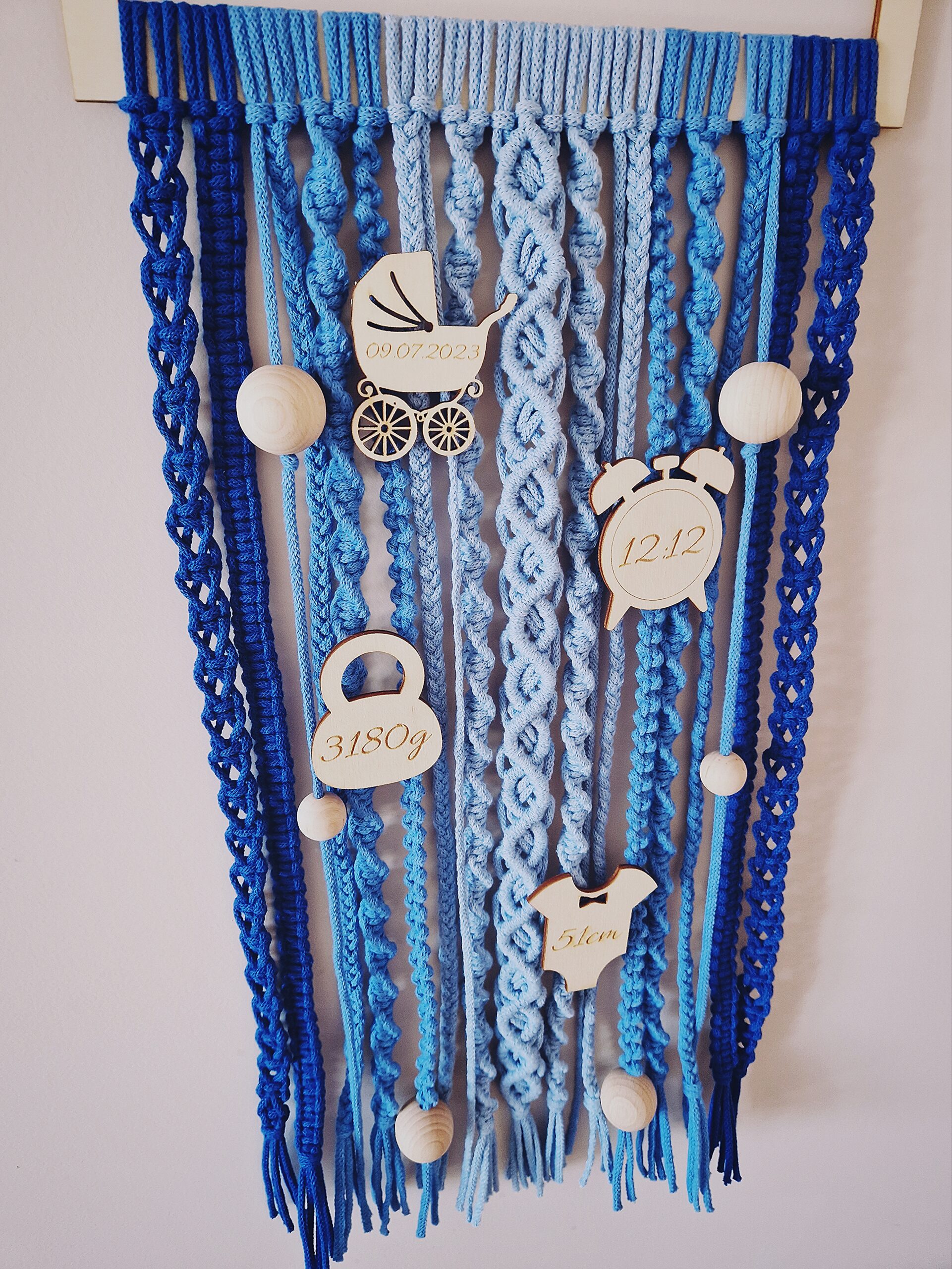 Makrama wykonywana na zamówienie. Możliwa jest zmiana wyglądu bazy – zapraszam do kontaktu.